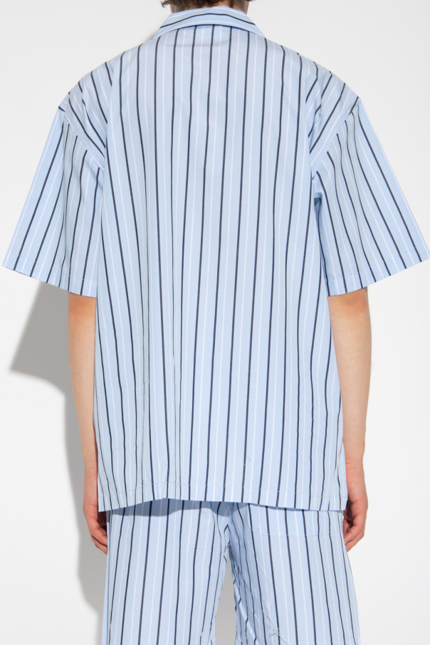 Blue ‘Emerson’ pyjama-style shirt from Samsoe Samsoe. Crafted from organic cotton, this style features a stripe pattern, button fastenings and short sleeves.