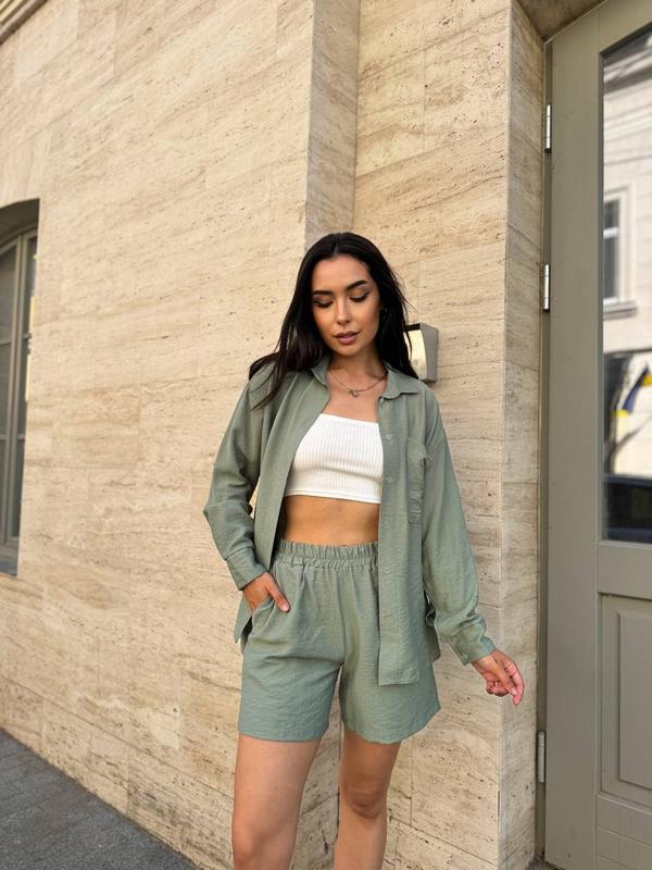 Материал:Лен ,Вид костюма:Двойка ,Особенности кроя:Оверсайз ,Сезон:Лето , Осень , Весна , Демисезон ,Стиль:Повседневный ,Описание