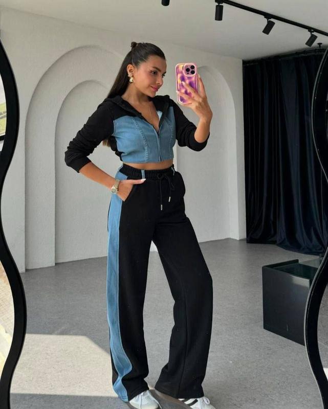 Такого костюму в тебе ще не було, поєднання петлі та джинсу , корсетне худі та штани палаццо, костюм в якому хочеться бути завжди 😍Стан: НовийКолір:- Білий