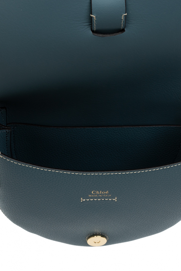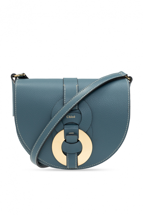 Blue ‘Darryl’ shoulder bag from Chloé. Crafted from leather, this design features a magnetic snap closure, embossed logo in gold-tone, decorative ring, back slip pocket, adjustable strap, gold-tone metal hardware and one internal compartment with one slip pocket.
