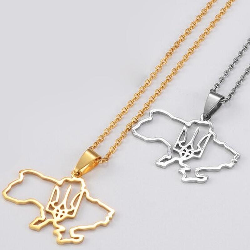 Кулон подвеска карта Украины с гербом RESTEQ серебряного цвета истинная