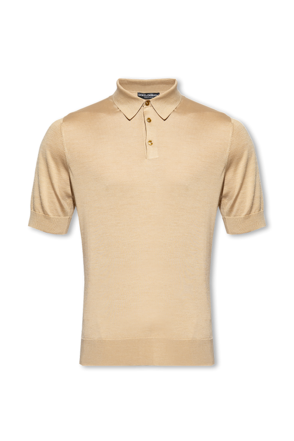 Beige polo shirt from Dolce & Gabbana. Made of silk, this design features buttons and ribbed trims at the collar and cuffs.