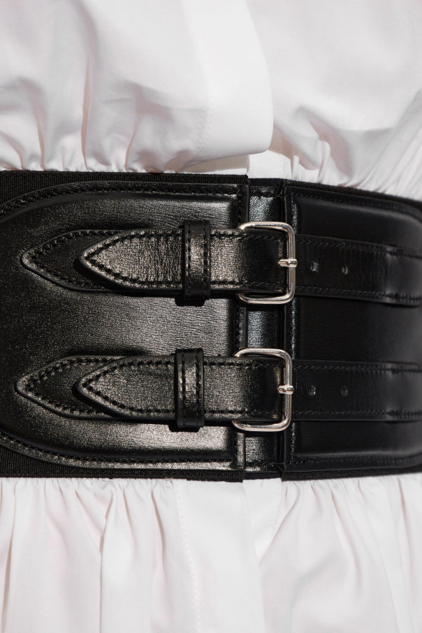 Introducing an exquisite piece from the renowned Alaïa collection, this Mid-Length Belted Dress is a testament to timeless elegance and modern sophistication. Crafted from 100% premium cotton, this piece ensures both comfort and durability, while offering a touch of luxurious feel against the skin. The dress features long sleeves with cuffed wrists, adorned with either buttons or clasps, adding a hint of classical charm. The shirt collar elevates its elegance, making it suitable for both formal affairs and casual outings. Precision-cut with darts or pleats at the front, it beautifully accentuates the silhouette, ensuring a flattering fit for any body type. Its smooth fabric, which may be either satin or matte finished, complements the striking contrast between the crisp white of the dress and the bold black of the wide belt. This belt, possibly crafted from leather or high-quality imitation, features double buckles, highlighting the waist and offering a contemporary twist to the ensemble. Additionally, the dress is thoughtfully designed with a buttoned front closure beneath a concealed placket and is endowed with two slip pockets, blending functionality with style. The dress\'s mid-calf length, coupled with a front pleat, adds volume and movement, encapsulating the essence of feminine grace. This piece, devoid of any visible logos or branding, speaks volumes through its design and craftsmanship alone. Why Purchase This Dress? Unparalleled Elegance: Shirt collar and cuffed long sleeves offer a sophisticated look. Accentuated Silhouette: Expert tailoring with a cinched waist belt for a flattering fit. Luxurious Material: Made from high-quality 100% cotton for comfort and durability. Versatile Style: Perfect for formal events or casual gatherings. Attention to Detail: Concealed button closure, double-buckled belt, and slip pockets for a blend of elegance and practicality.