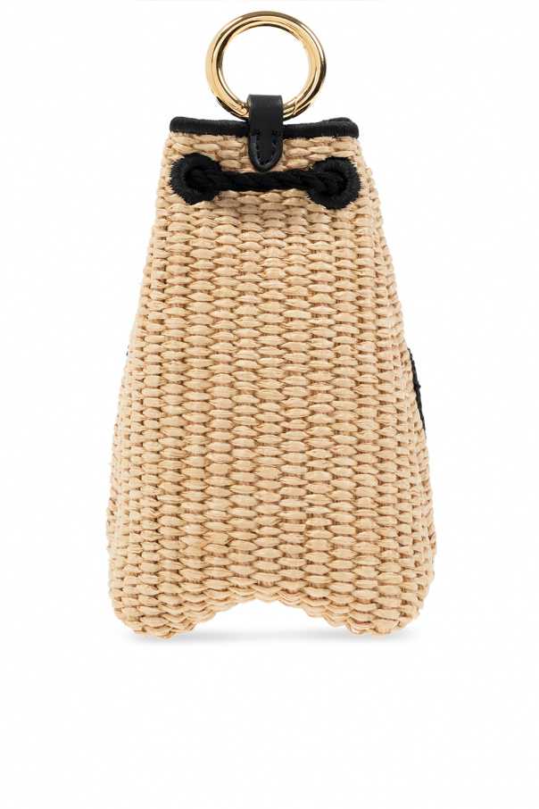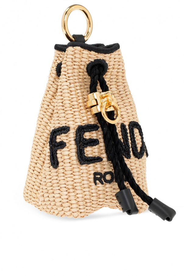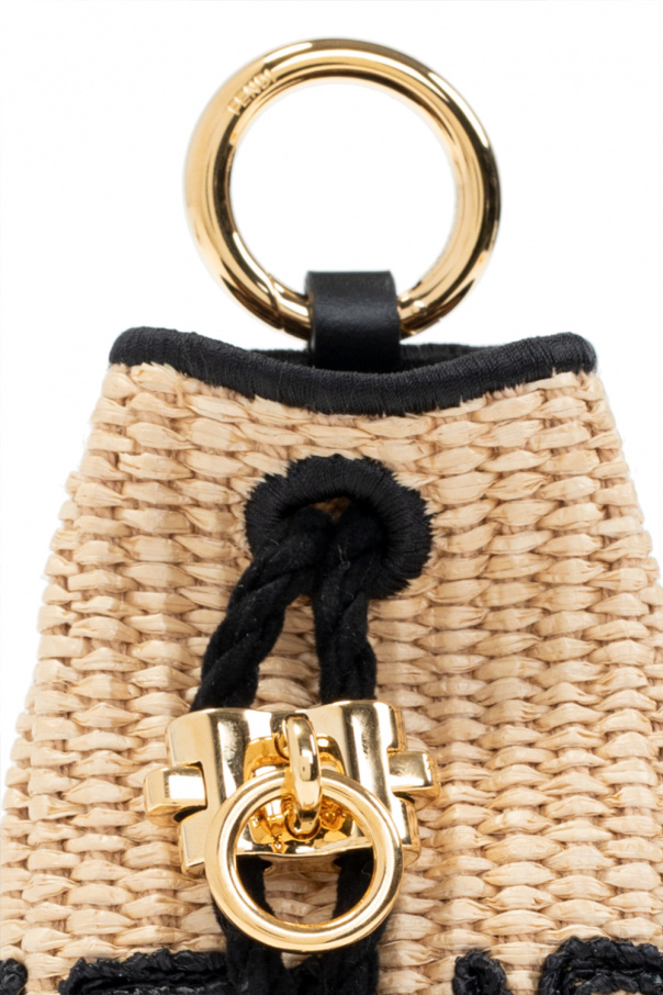 Gold-tone keyring from Fendi. This item comes with a handcrafted pouch with a drawstring fastening and a black logo.