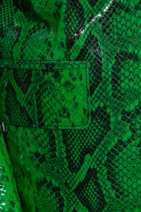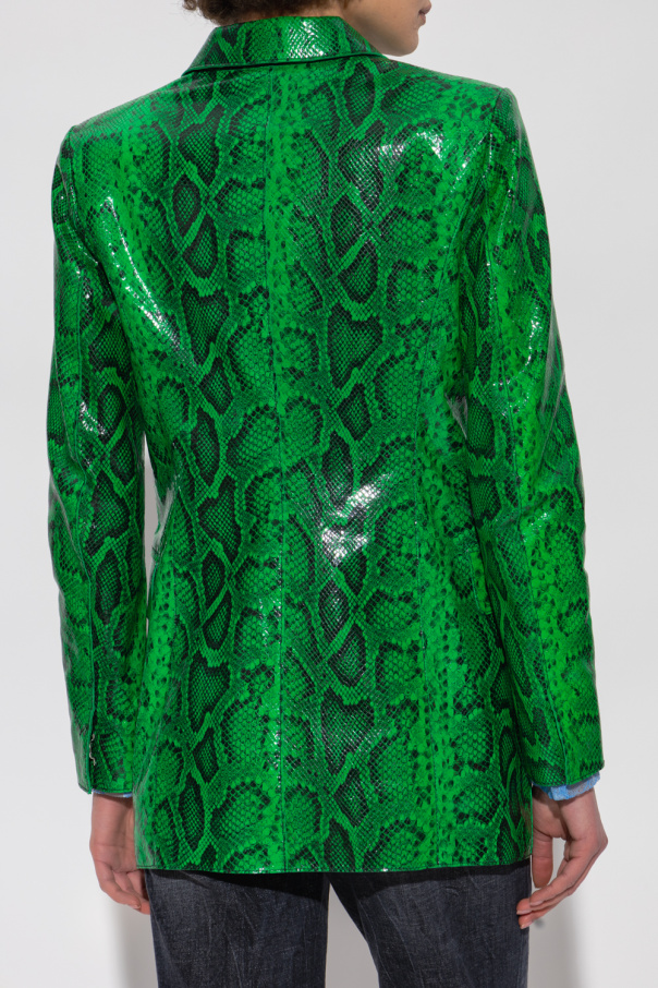 Green blazer from Dsquared2. Made of patent sheep leather with a snakeskin effect, this design features a silver-tone logo-engraved hook, notch lapels, two flap pockets, one slip pocket and long sleeves with hook fastenings.