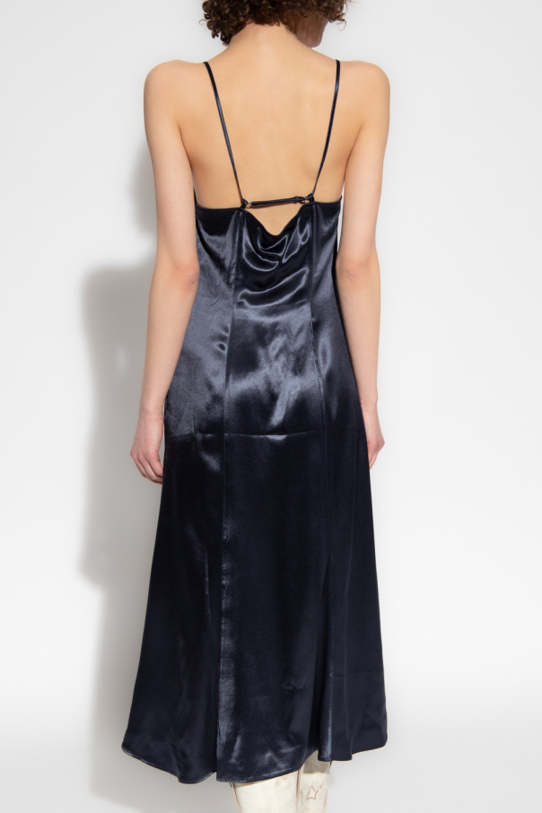 Navy blue ‘Annah’ slip dress from Samsoe Samsoe. Spun from viscose, this style features a frontal slit and button fastenings on the side.