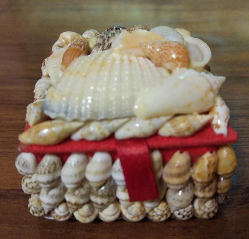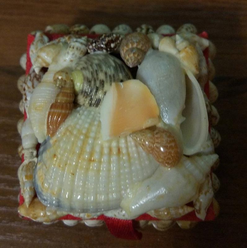 Шкатулка из ракушек ручной работы. Размер дна 4,5 см х 4,5 см, высота 2,5 см. Новая, в использовании не была, хранилась завернутой в бумагу. Отправлю.
