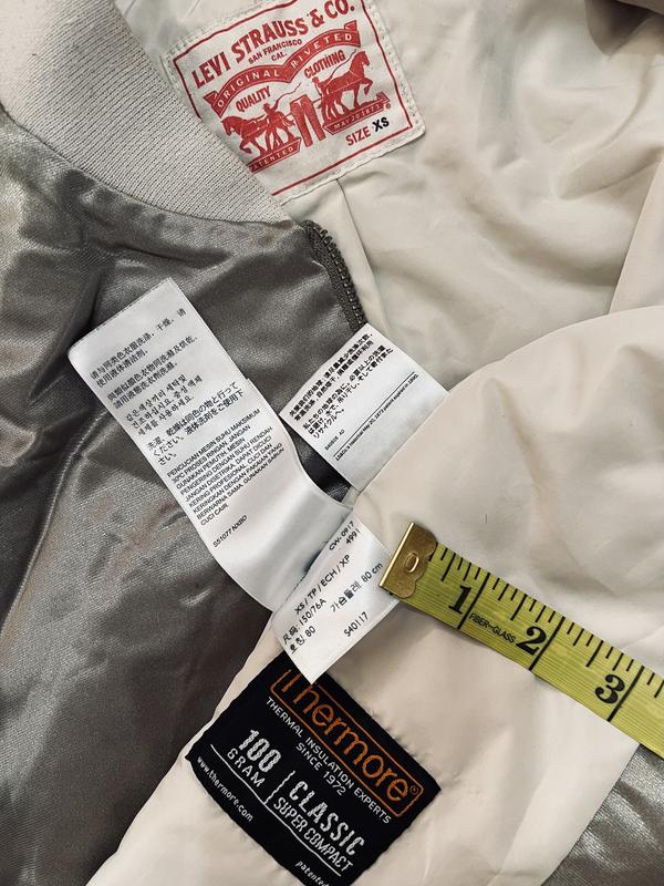 Оригинальный бомбер легендарный Levi’s, свежая коллекция, все бирки, фурнитура брендированная, красивый серебристо- оливковый цвет, глянцевый, состояние идеальное, без дефектов, размер указан XS, можно S- см замеры. Цена на сайте 100 долларов