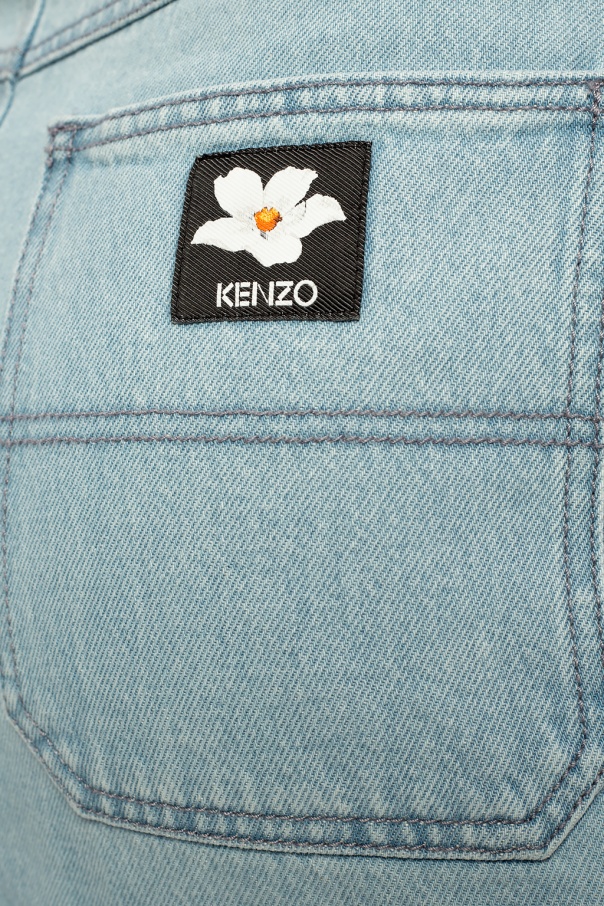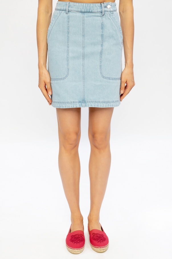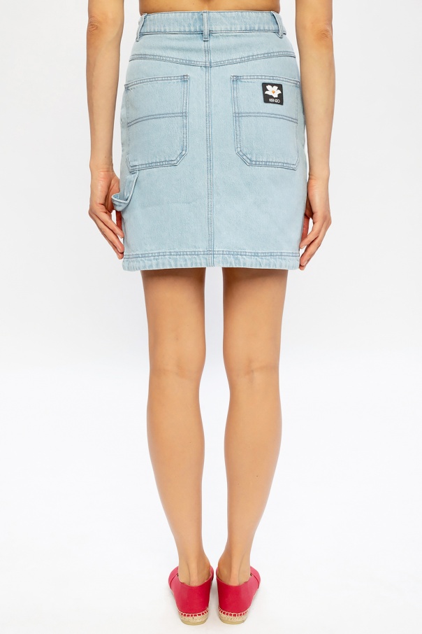 Light blue denim skirt from Kenzo x Vans. Showcasing an asymmetrical zip fastening, this design has also single button closing, four slip pockets and black and white logo patch on the back.