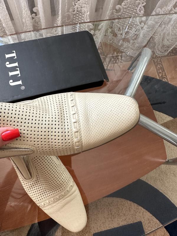 В идеальном состоянии, в носке были эдиный раз, без дефектов. Кожа натуральная. Полный 40-41 размер