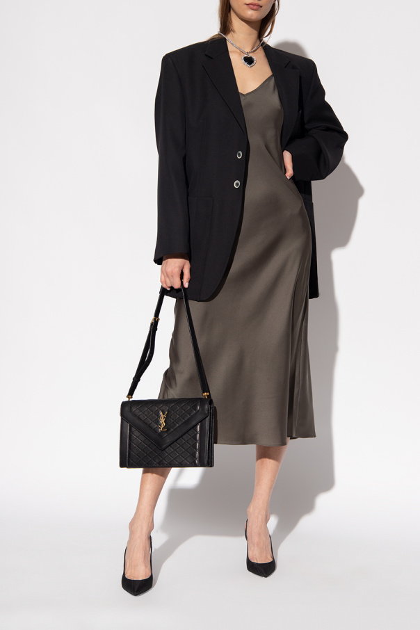 Black ‘Anja’ pumps from Saint Laurent. Crafted with a pointed toe silhouette, this model features an open heel and a black leather sole.