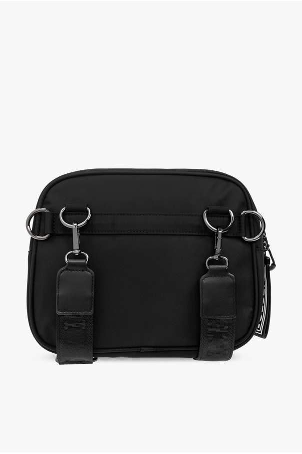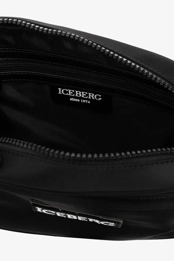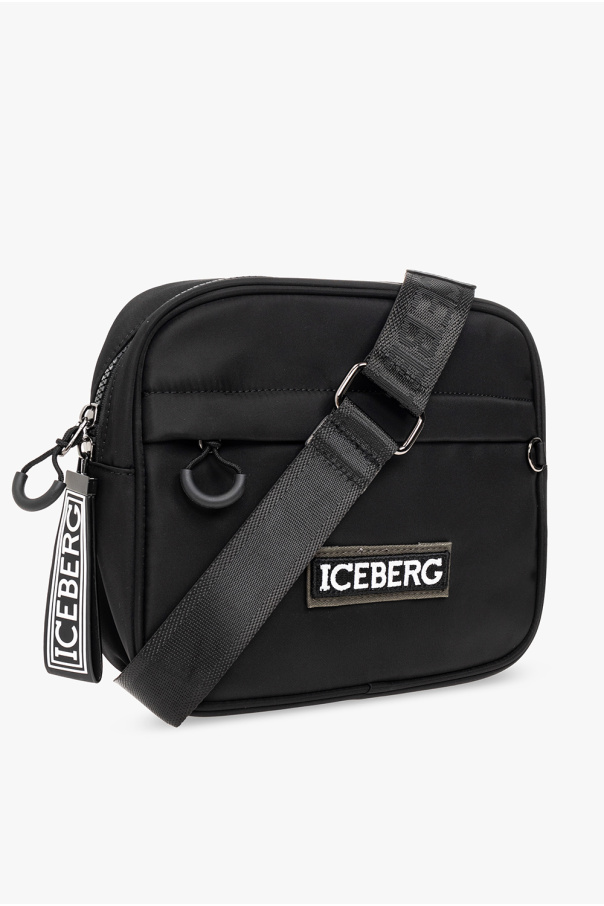 Black shoulder bag from Iceberg. Fastened with a zip, this garment features a white and black logo patch, front zip pocket, silver-tone metal hardware and one internal compartment with one zip pocket.