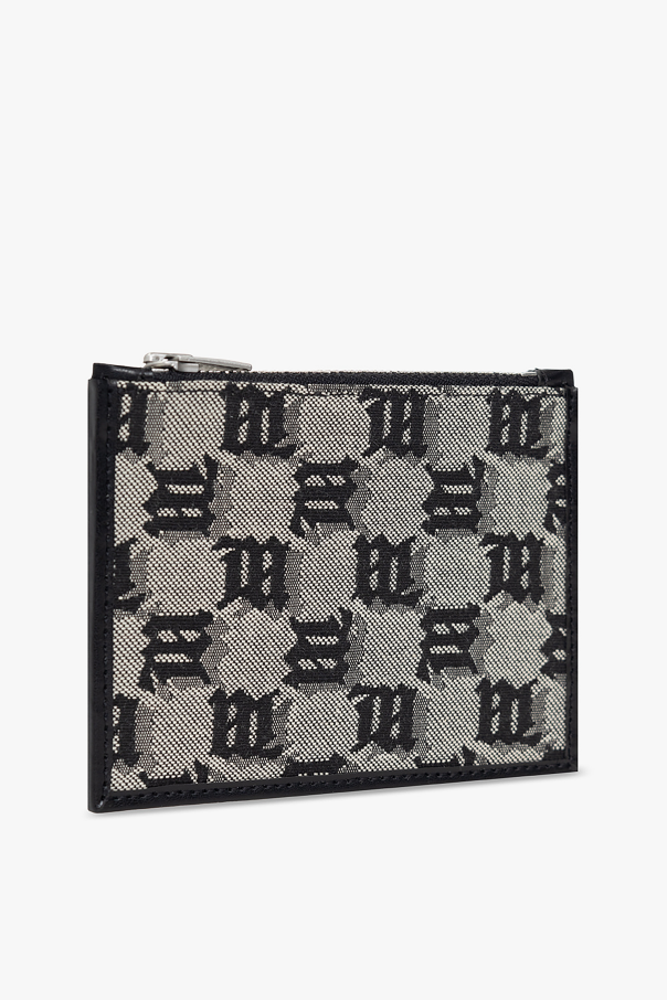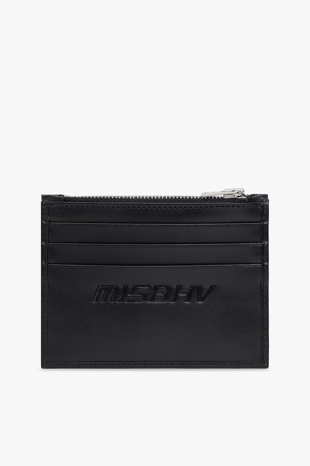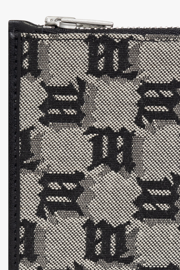 Beige and black card case from MISBHV. Crafted from cotton and leather, this design showcases the brand\'s ‘M’ monogram, an embossed logo, one zip pocket and three card slots.