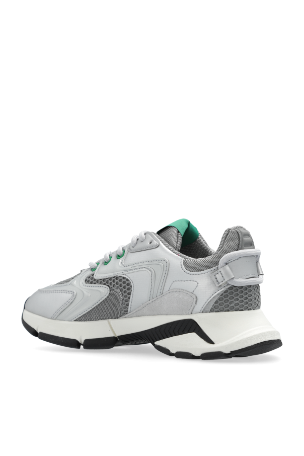 Introducing the Lacoste Silver Sport Sneakers, a testament to modern design and athletic elegance. Crafted with meticulous attention to detail, these sneakers feature a multi-layered construction that blends various textures, including mesh and smooth faux leather, creating a dynamic and contemporary look. The primary silver hue is tastefully complemented by shades of white and gray, with subtle green accents, embodying a sophisticated palette. The sneakers boast a robust design with a thick, patterned rubber sole that not only provides additional cushioning but also ensures superior traction. Classic lacing and a padded tongue offer enhanced comfort, making these shoes ideal for both sports activities and everyday wear. The designer\'s logo is prominently displayed on the side, tongue, and sole, serving as a hallmark of quality and exclusivity. Why Purchase This Product? Exclusive Lacoste branding throughout, signifying luxury and status. Multi-textured construction with a silver-centric color scheme for a modern and stylish appearance. Durable rubber sole with extra cushioning and grip for optimal performance. Designed for versatility, seamlessly blending sporty functionality with urban fashion.