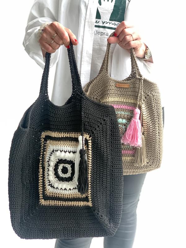Сумка Tassel от AngelaMasterica . Описание вязания крючком этого шоппера в формате видео-уроков и текстового описания .Все этапы: от подбора пряжи до вывязывания съемных кисточек.