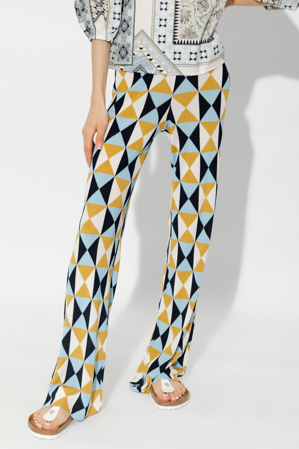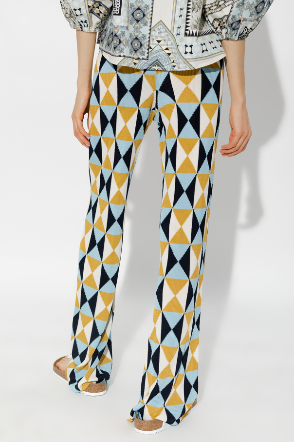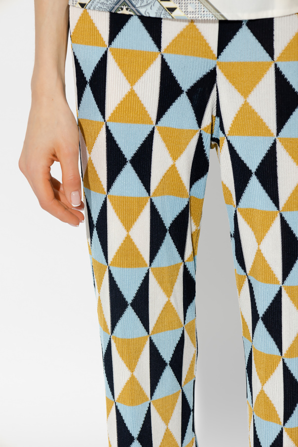 Multicoloured trousers from Etro. Enriched by a geometrical pattern, this pair falls with wide, straight legs and features an elasticated waistband.