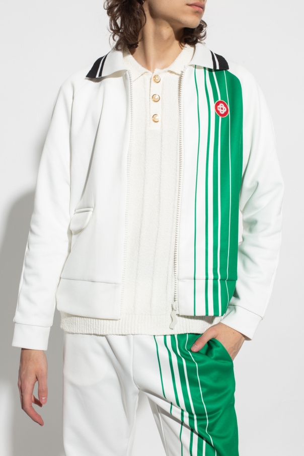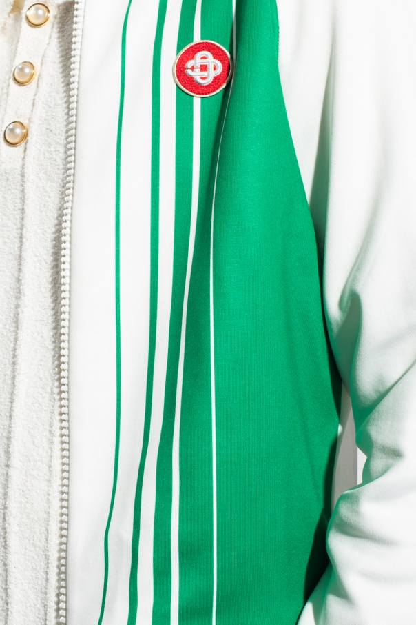 White, green and black sweatshirt from Casablanca. Fastened with a zip, this garment features a red and white logo patch, flap pocket and ribbed trims at the hem and cuffs.