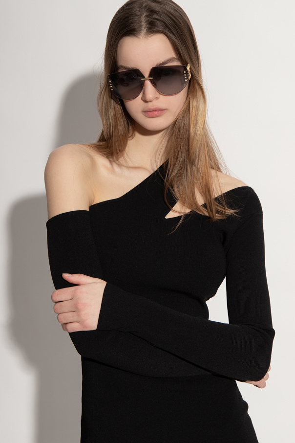 Gold-tone sunglasses from Loewe. Decorated with the label’s logo on the side, this model has certificated black lenses with 100% UVA/UVB protection and comes with a case.