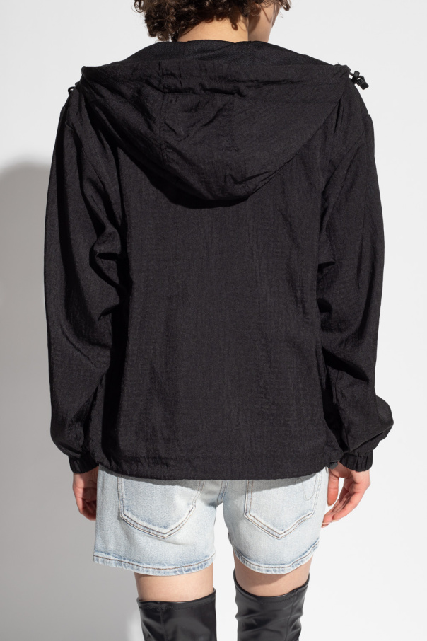 Black \'J-JASS-MON\' jacket from Diesel. Crafted in technical material, this style features a zip fastening, a drawcord-adjustable hood and hem, two zip pockets, a mesh lining and long sleeves with elasticated cuffs.