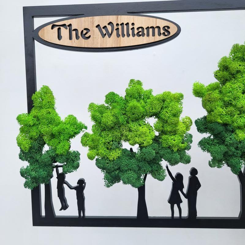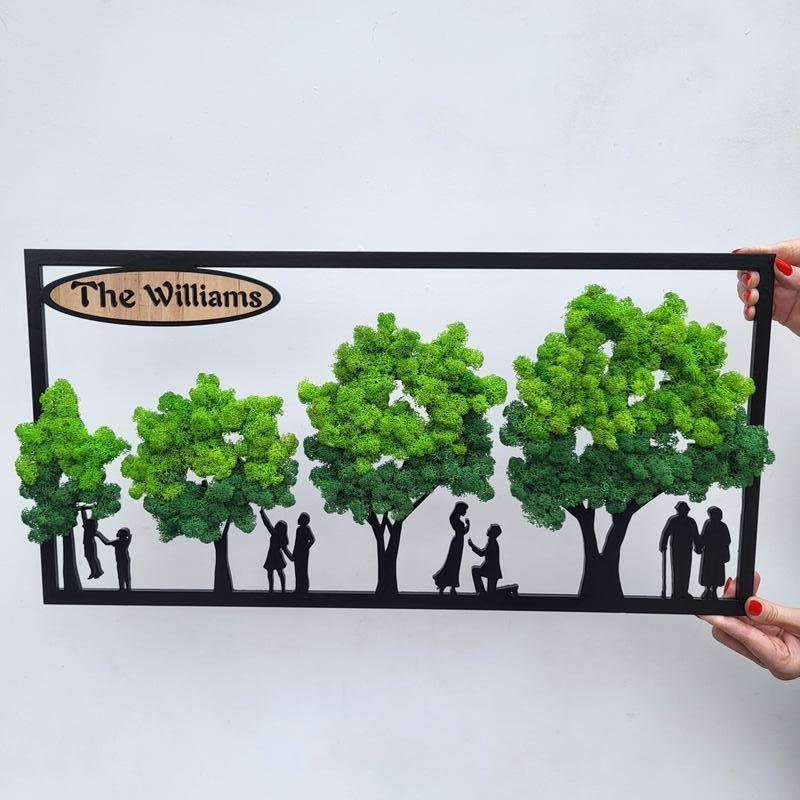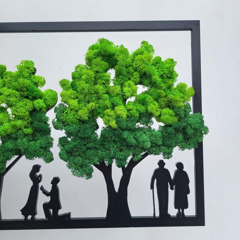 Конечно! Это именноя семейная картина, изготовленная из высочайшего качества стабилизированного мха, создает волшебную атмосферу природной элегантности в вашем помещении. Каждая деталь этого произведения искусства отражает тщательность и утонченность ручной работы.