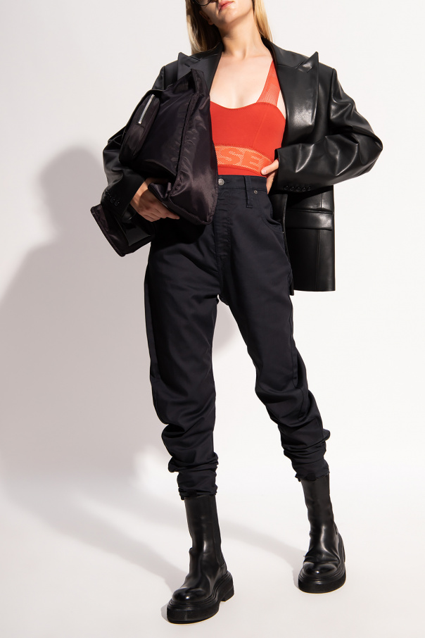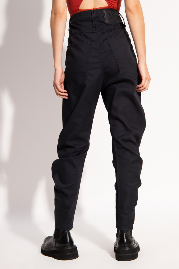Black ‘D-Plata Jogg’ jeans from Diesel. Crafted from JoggJeans fabric developed by the label, this high-waisted design is complete with a zip fly and button, three front pockets and two back pockets.