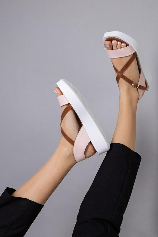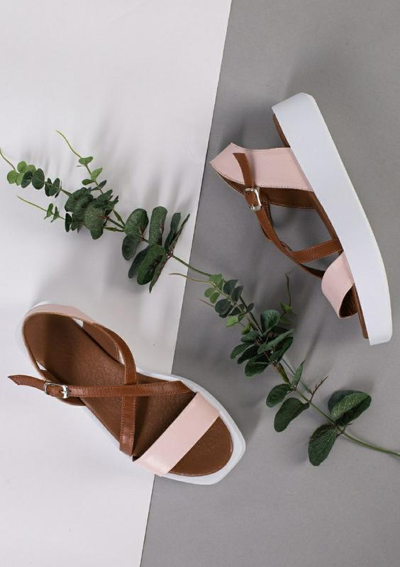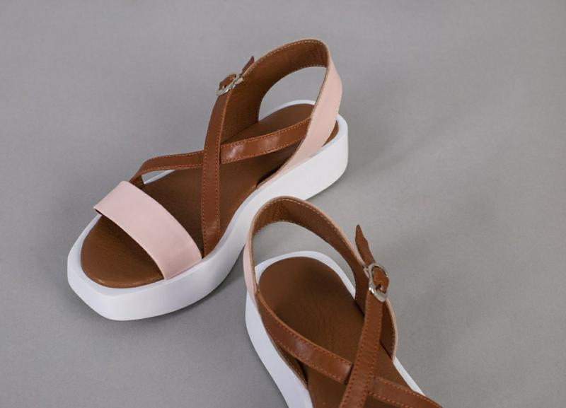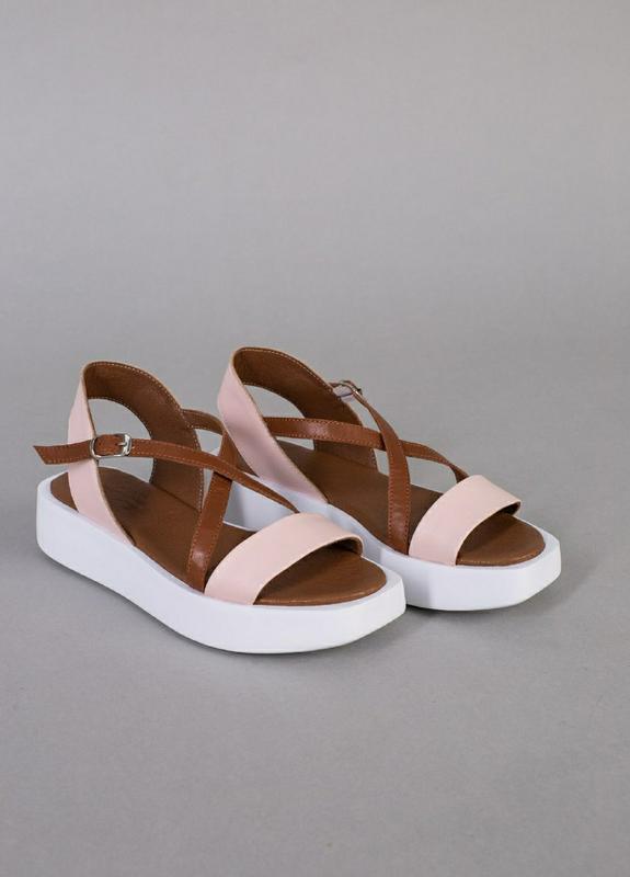 Жіночі босоніжки Сезон: літо Розміри: 36 - 41 Колір: пудра+коричневий Матеріал верху: натуральна шкіра, Всередині: шкіряна устілка Висота підошви: 2,5-4 см Матеріал підошви: поліуретан