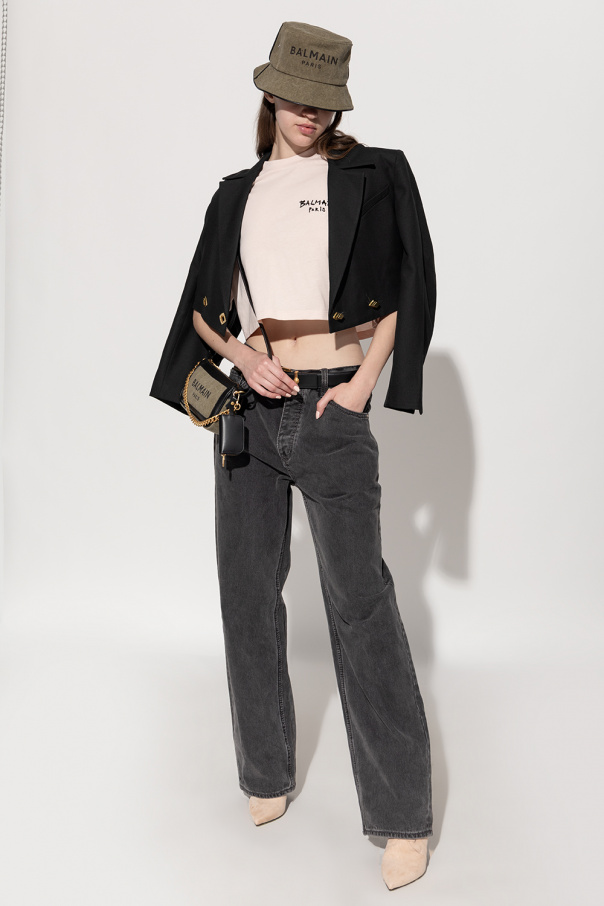 Beige ‘Uria’ heeled ankle boots from Balmain. Made of calf suede, this lace-up pair features buckle straps on the sides, gold-tone back zip with a logo, pointed toe and black leather sole.