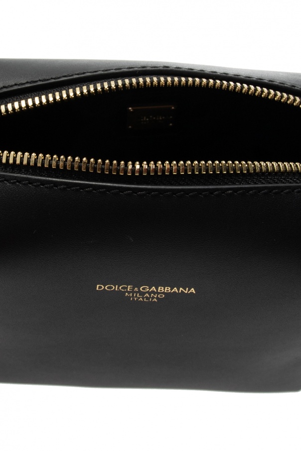Black adjustable belt from Dolce & Gabbana. This item features two pouches made of calf leather with two-way zip fastening, a gold-tone logo print and one internal compartment each.