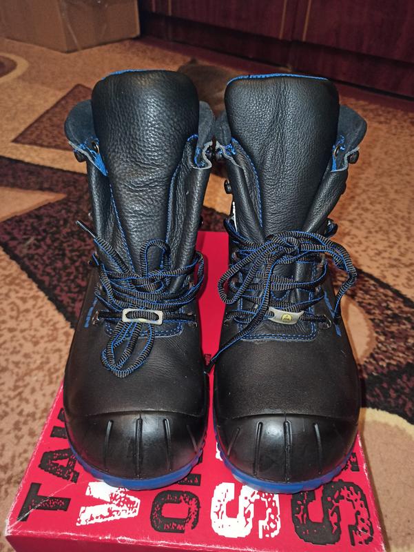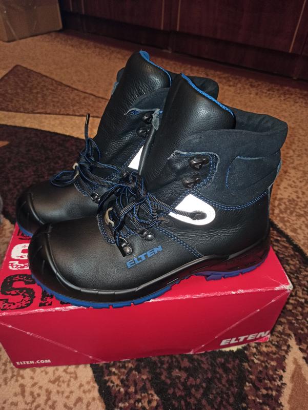 Сапоги Elten Alessio blue Mid S3 имеют высокий верх, который изготовлен из водонепроницаемой коровьей кожи.