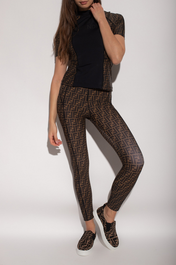 Brown and black top with a high neck from Fendi. This short sleeve design is enriched by a logo and perforations at the back.