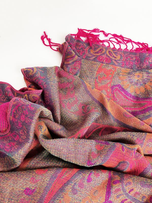 Элегантный двухсторонний палантин из Тайланда с оригинальным орнаментом и кистями по краям.