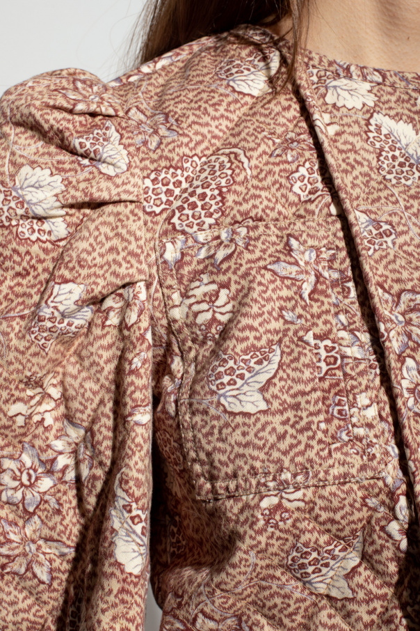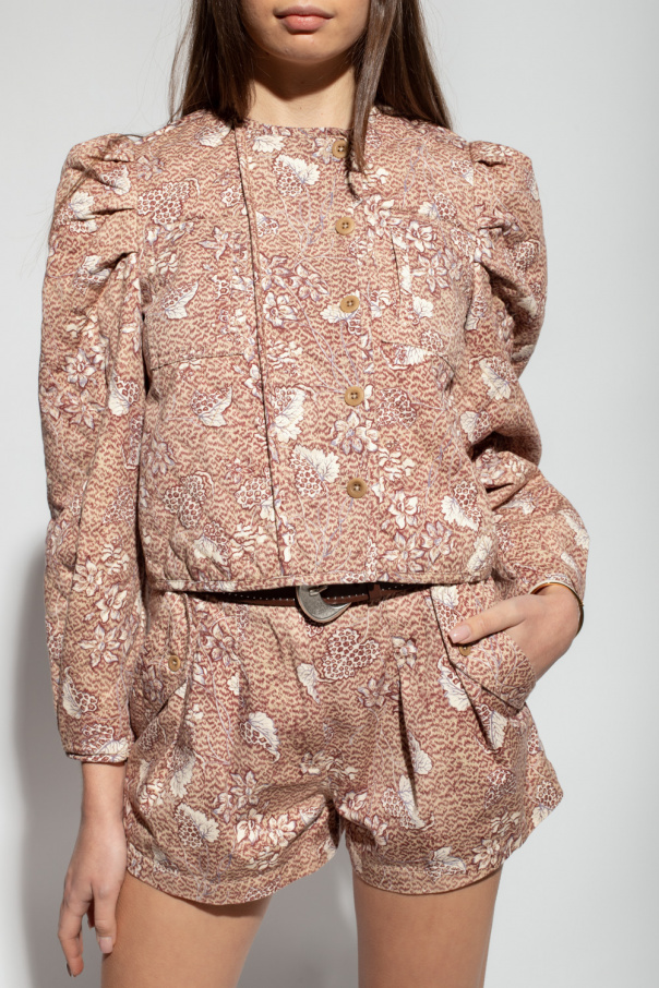 Beige, cream and brown ‘Syd’ patterned jacket from Ulla Johnson. Crafted from cotton, this garment features button fastenings, floral pattern, front pocket and long puff sleeves.