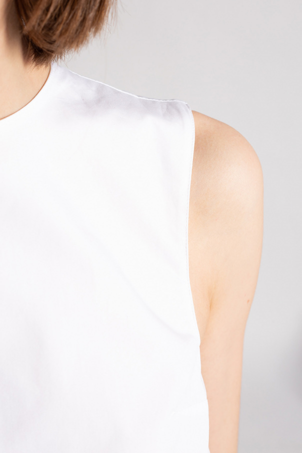 White and cream crewneck top from Marni. Made of cotton, this item features a single button fastening and a cut-out back.