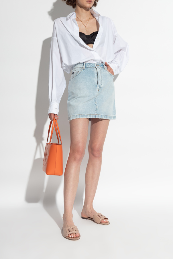Introducing the Leather Slides from the illustrious house of Dolce & Gabbana. These slides epitomize luxurious minimalism, crafted with exceptional attention to detail and using the finest materials. The classic shape, adorned with a wide strap featuring a subtly cut-out designer logo, offers a distinctive yet understated elegance. Made from high-quality leather, these slides promise both durability and comfort. The leather sole accentuates their premium character, making them a sophisticated addition to any wardrobe. The dominant beige hue enhances their versatility, effortlessly complementing a myriad of styles. Each pair boasts a barely noticeable heel, adding a touch of subtle elegance while ensuring comfort. The cut-out logo on the upper strap not only identifies the prestigious brand but also adds a unique flair to the design. As depicted in the styling images, these slides pair beautifully with a white shirt, denim skirt, and orange handbag, showcasing their adaptability and timeless appeal. Why Purchase These Slides? Exquisite craftsmanship from the renowned Dolce & Gabbana. High-quality leather ensuring longevity and comfort. Elegant, versatile beige color. Unique designer logo for a touch of luxury. Subtle heel for added comfort and elegance.
