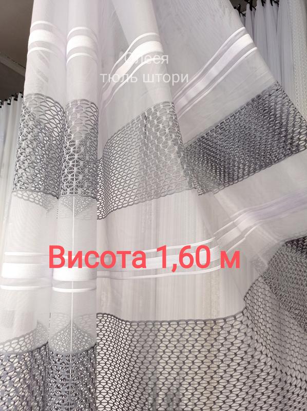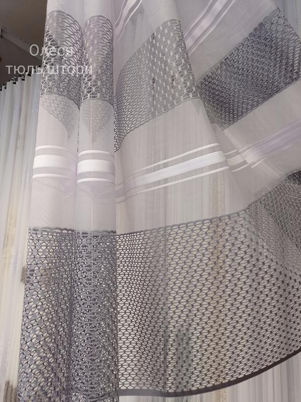 Тюль короткий , основа жакард білого кольору з сірою сіточкою ❤️