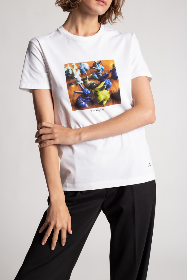 White crewneck T-shirt from PS Paul Smith. Crafted from organic cotton, this style showcases a colourful graphic print with the brand\'s logo.