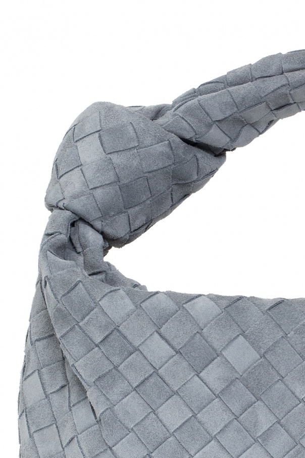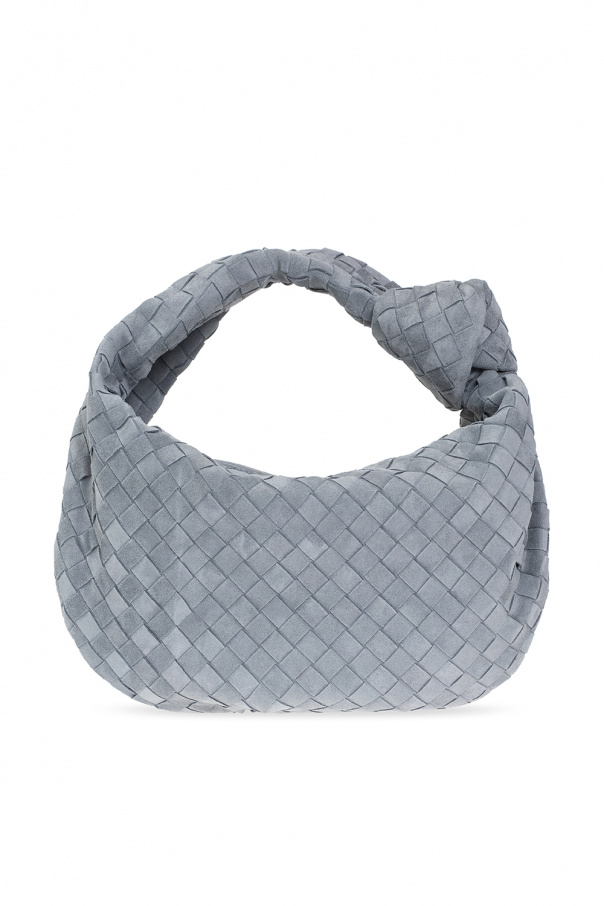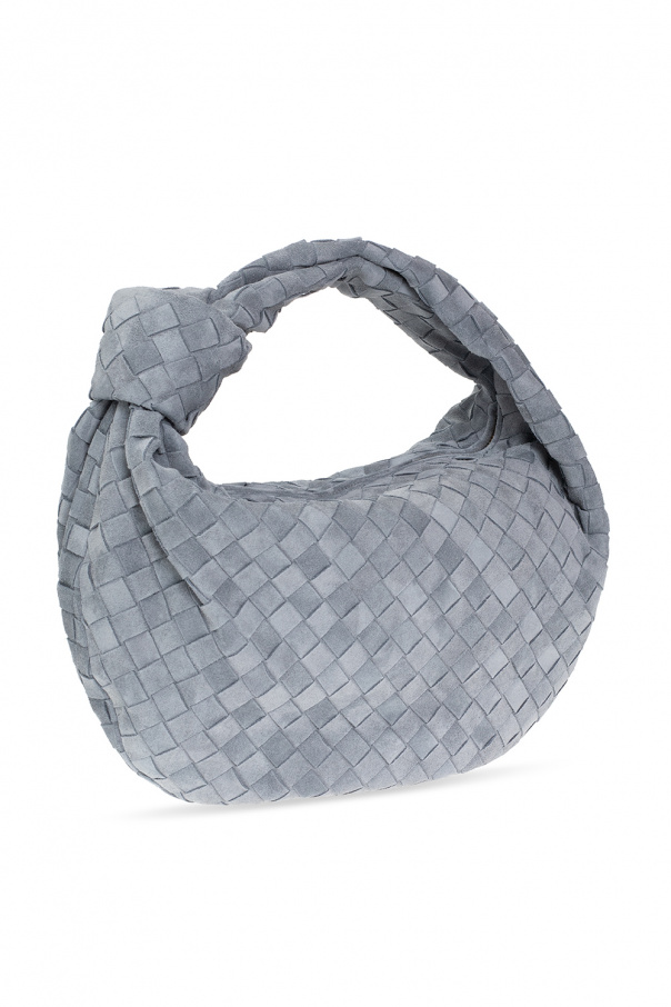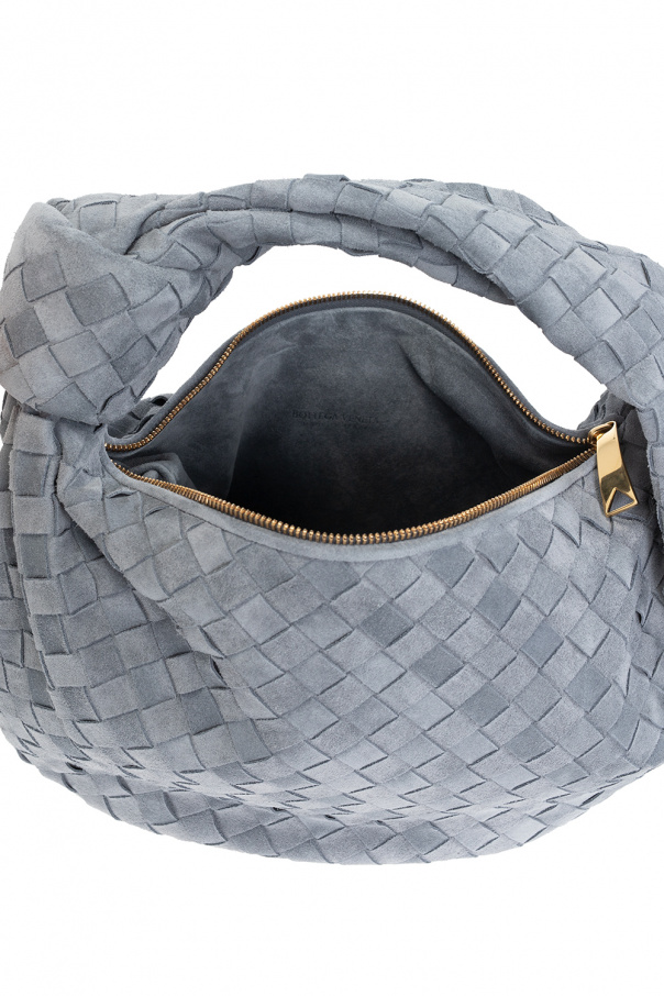 Grey ‘Jodie Teen’ handbag from Bottega Veneta. Made of suede with the Intrecciato weave, this model features a zip fastening, half-round handle, one internal compartment and gold-tone metal hardware.