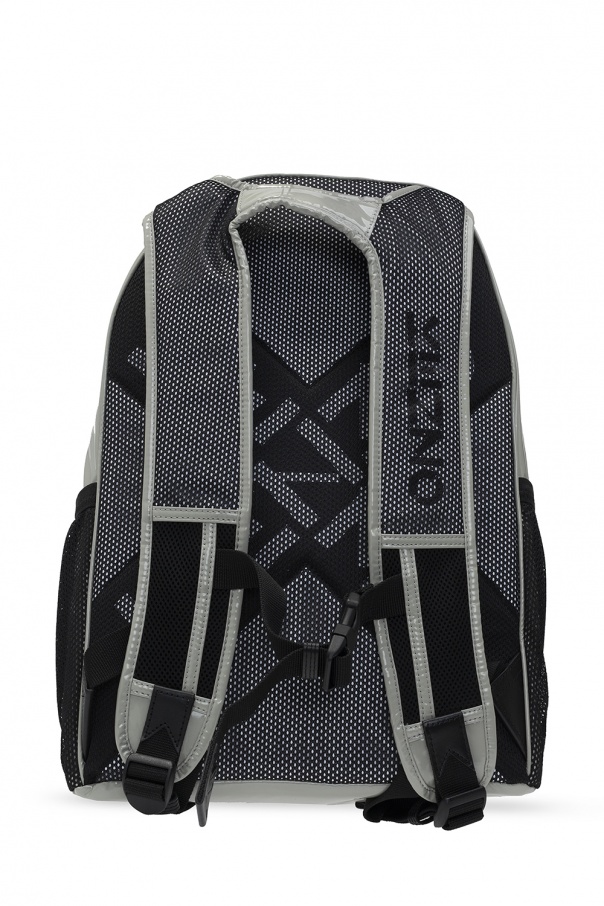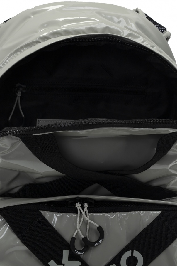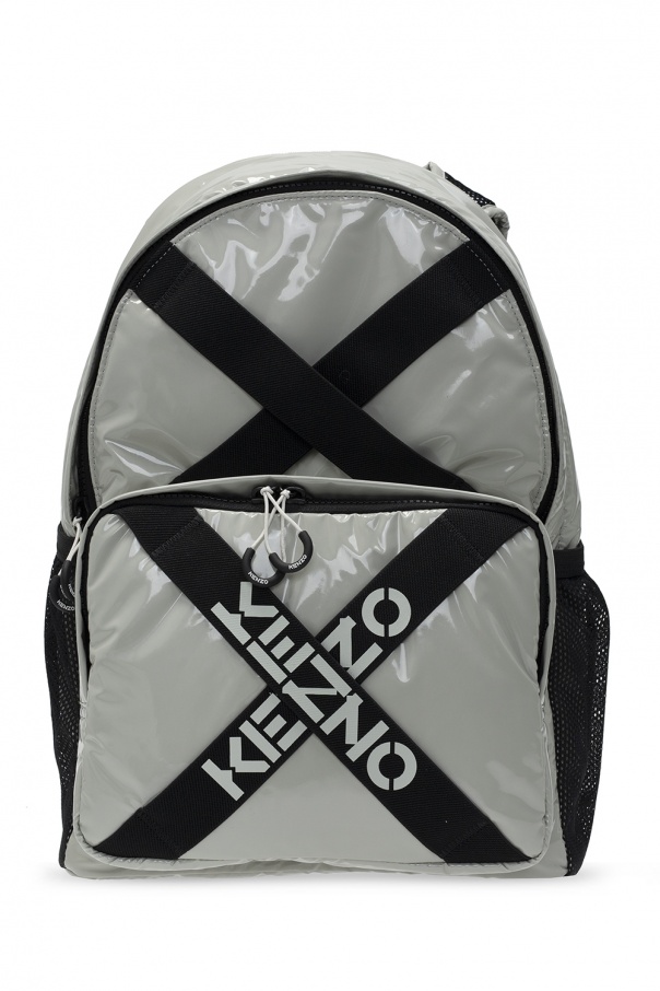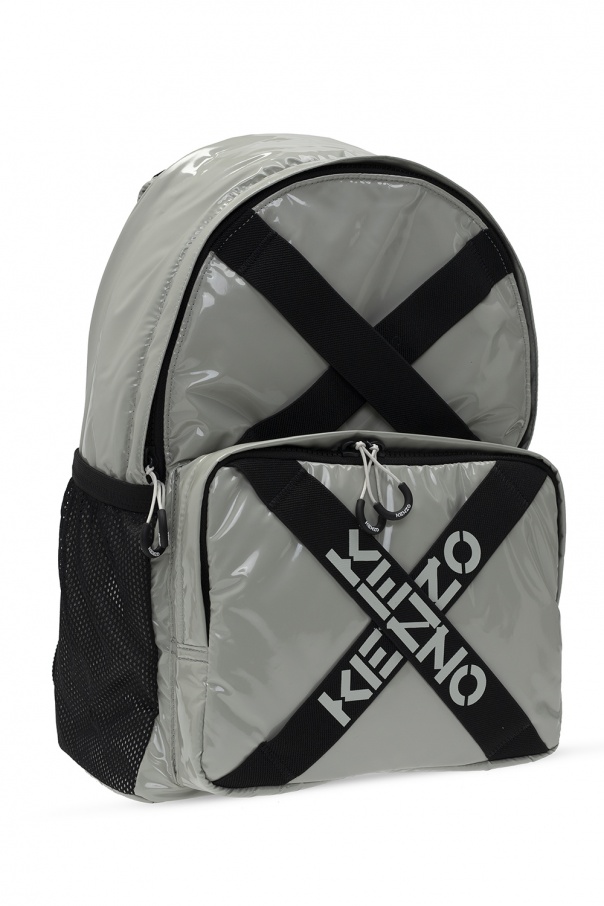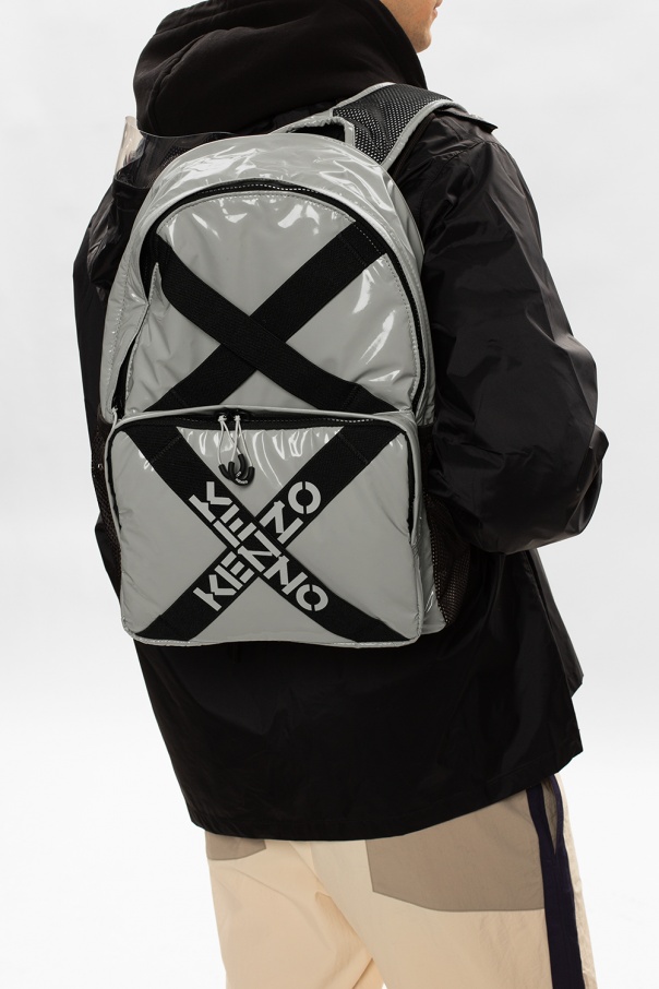 Grey and black backpack from Kenzo. Printed with the brand\'s logo, this design fastens via a two-way zip and employs two slip pockets on the sides and one zip pocket on the front, a half-round handle, adjustable shoulder straps and interior with one compartment and a zip pocket.