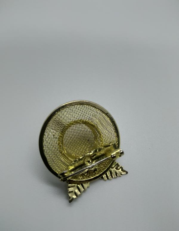 дизайнерская Винтажная брошь в золотом цвете в виде шляпки с перышками.в сеточку.