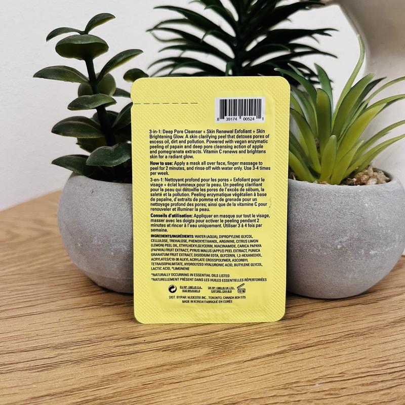 Это домашний химический пилинг-эксфолиатор для осветления кожи, который очищает поры от избытка жира и загрязнения, одновременно заметно омолаживая тон и текстуру кожи благодаря энзимному пилинговому действию папаина и восстанавливающим свойствам экстрактов яблока и граната. Этот супергерой кожи также содержит витамин С, мощный антиоксидант, а масло лимонной цедры осветляет кожу, придавая ей здоровое молодое сияние.