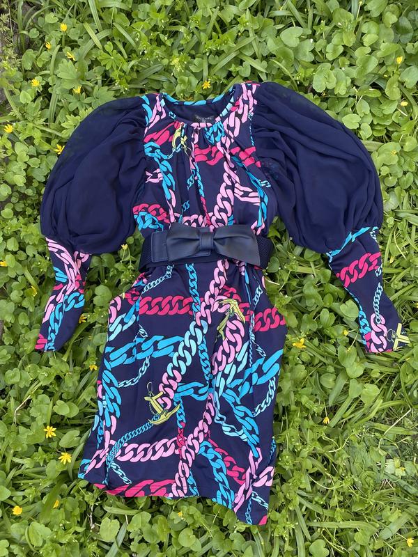 Сукня з обьемными рукавами і яскравим забарвленням, два пояси кушака(червоний і чорний з шкірозамінника) в подарунок