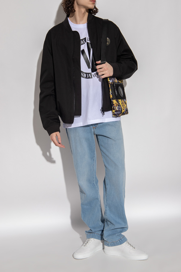 White ‘Bball Summer’ sneakers from Common Projects. Crafted from nubuck leather, this lace-up model sits on a white rubber and showcases a perforated toe cap, green trims and a signature gold-tone serial number stamped on the side.