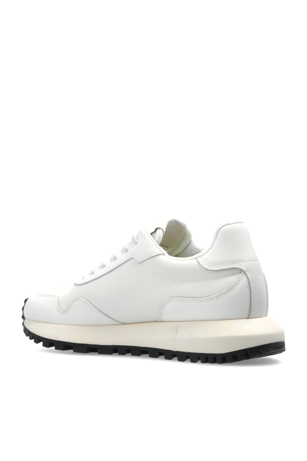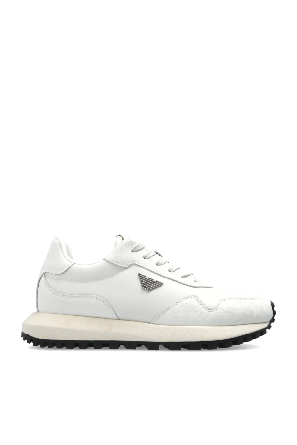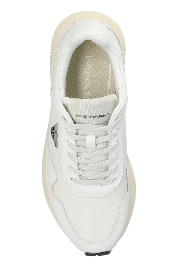Introducing the Emporio Armani Sport Shoes with Logo, an embodiment of sophistication and minimalism. These cream-colored sneakers, crafted from premium leather and synthetic materials, showcase a timeless low-top design with a rounded toe, epitomizing classic elegance. The smooth, unembellished surface enhances their minimalist allure, making them a quintessential choice for the discerning fashion aficionado. Adorned with a distinctive silver logo on the side, these shoes exude prestige and brand distinction. The interior, enriched with a brand inscription, affirms their authenticity and luxury heritage. A robust, light-toned outsole with a black, anti-slip tread ensures both style and functionality, while the classic white laces offer seamless integration into any outfit, whether casual or athletic. Why choose this product? Exquisite design by Emporio Armani, synonymous with luxury and innovation. High-quality leather and synthetic materials for durability and comfort. Versatile style, perfect for both everyday and sporty ensembles. Iconic silver logo for a touch of prestige and brand recognition.