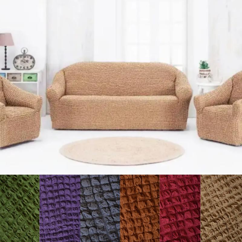 Захисний, натяжний чохол на диван і два крісла з еластичної тканини креш. Не