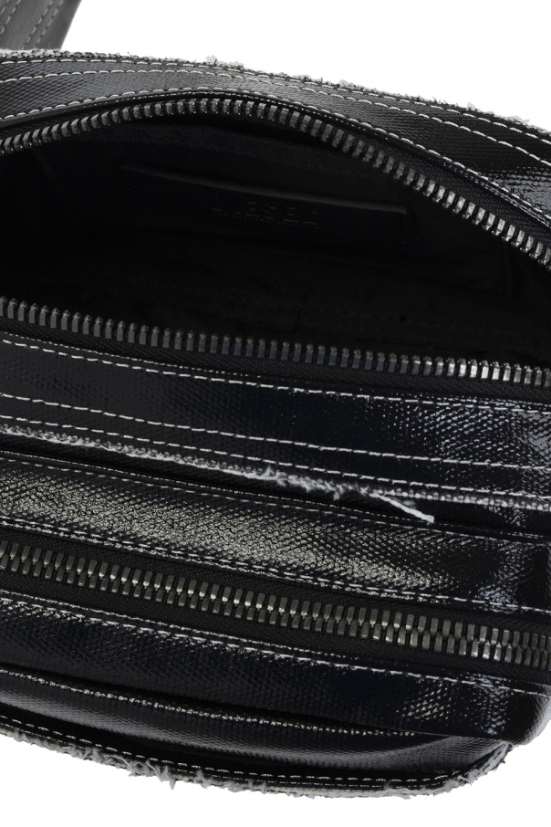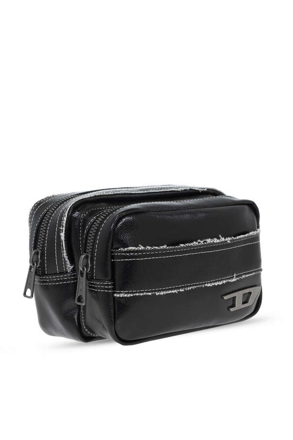 Black ‘Korro’ belt bag from Diesel. Crafted from varnished faux-leather, this design features a zip fastening, a metal logo application, contrasting white topstitching, one zip pocket and one slip pocket on the front, an adjustable strap and one internal compartment with a slip pocket.