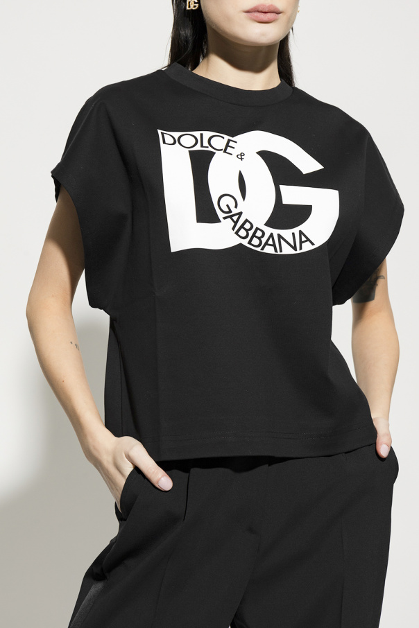 Black tank top from Dolce & Gabbana. Crafted from cotton with a relaxed fit, this style features a round neck and a printed white logo on the front.