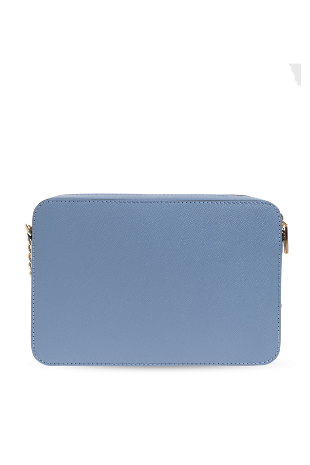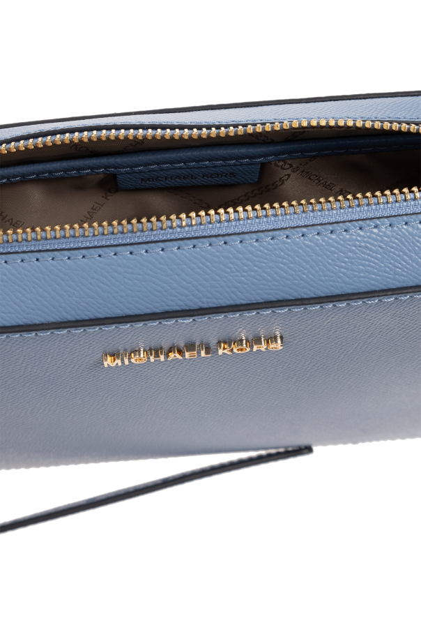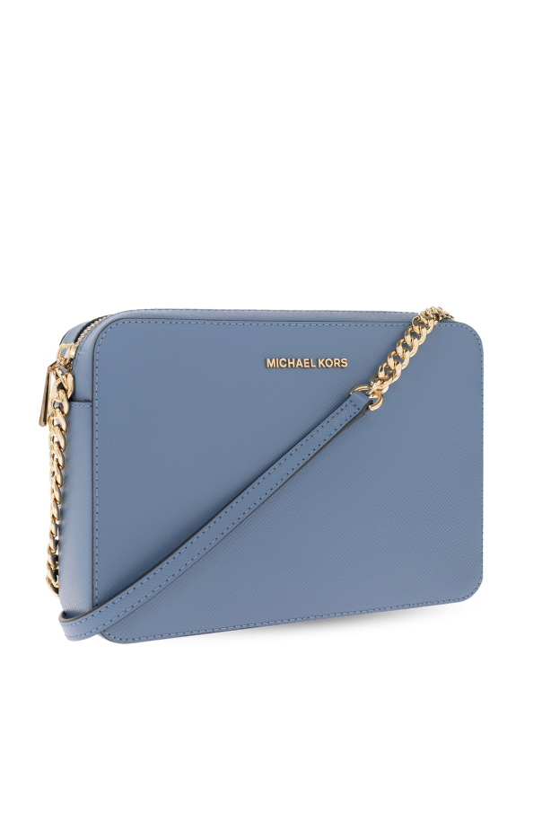 Blue ‘Jet Set Large’ shoulder bag from Michael Michael Kors. Made of grained leather, this model features a zip fastening, metal logo detail, shoulder chain, adjustable shoulder strap, gold-tone metal hardware and one internal compartment with one slip pocket.