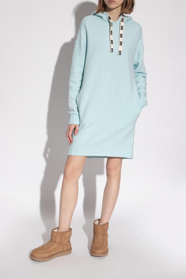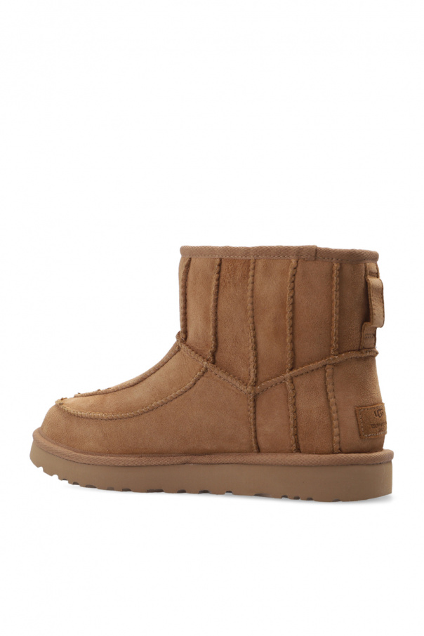 Brown ‘Classic Repeated Mini’ snow boots from UGG x Tschabalala Self. Made of leather, this model features stitching details inspired by Tschabalala’s sculpture ‘Loveseat’, a patch with the collaboration logo, cream lining made of recycled wool blend UGG Plush™ and brown Treadlite by UGG™ sole made of rubber. The model comes from UGG’s collaboration with American artist Tschabalala Self known for her depictions of Black female figures using paint, fabric, and discarded pieces of her past works.