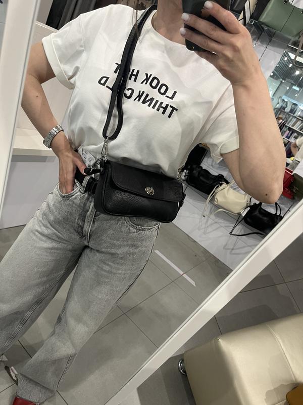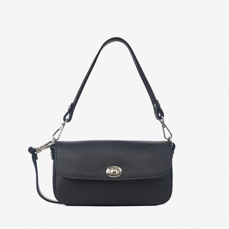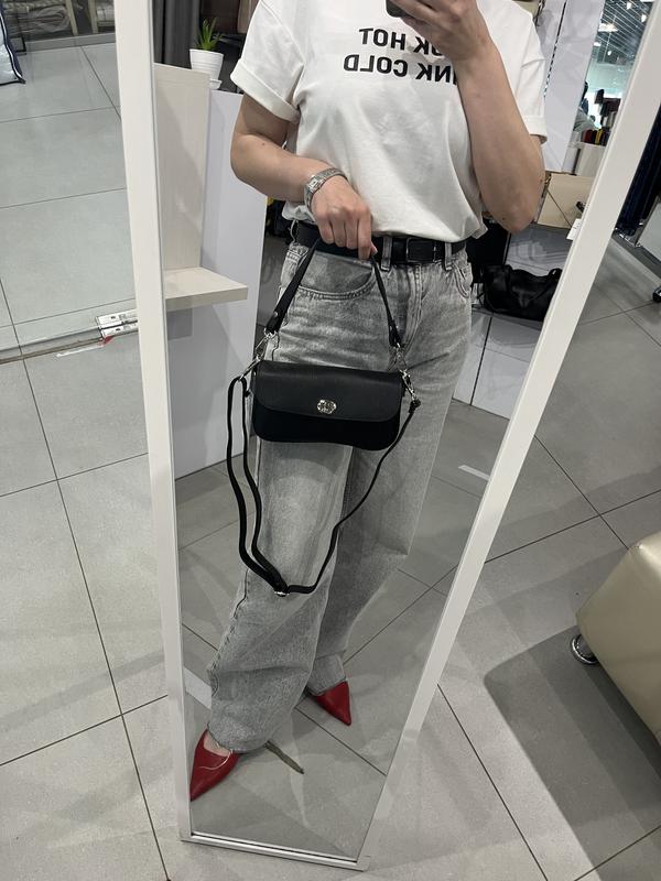 Практичная сумочка кроссбоди в базовом черном оттенке кожи. Стильный лаконичный вариант повседневной небольшой сумочки для прогулок, путешествий и просто на каждый день.