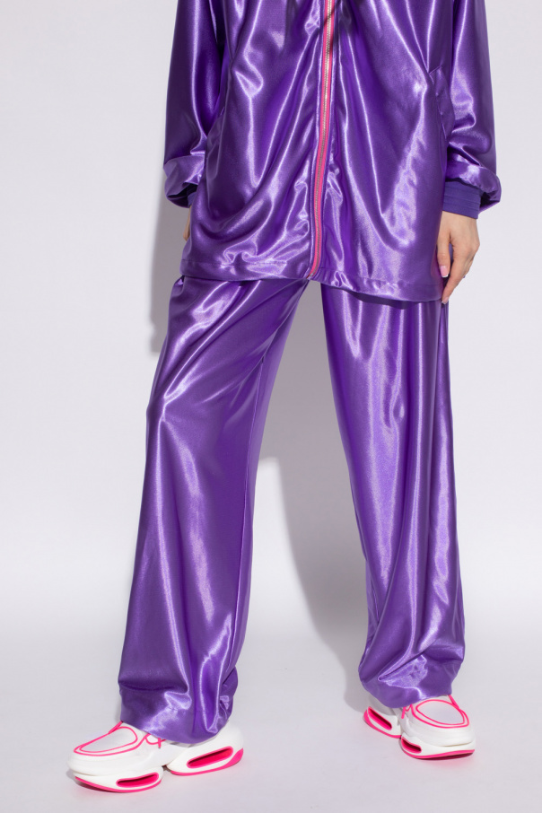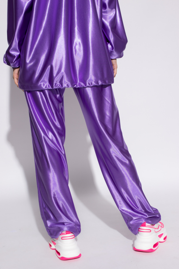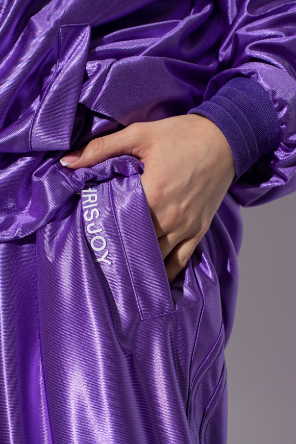 Purple sweatpants from Khrisjoy. Printed with the brand\'s logo in white, this pair features a drawstring waistband and cuffs and two slip pockets.